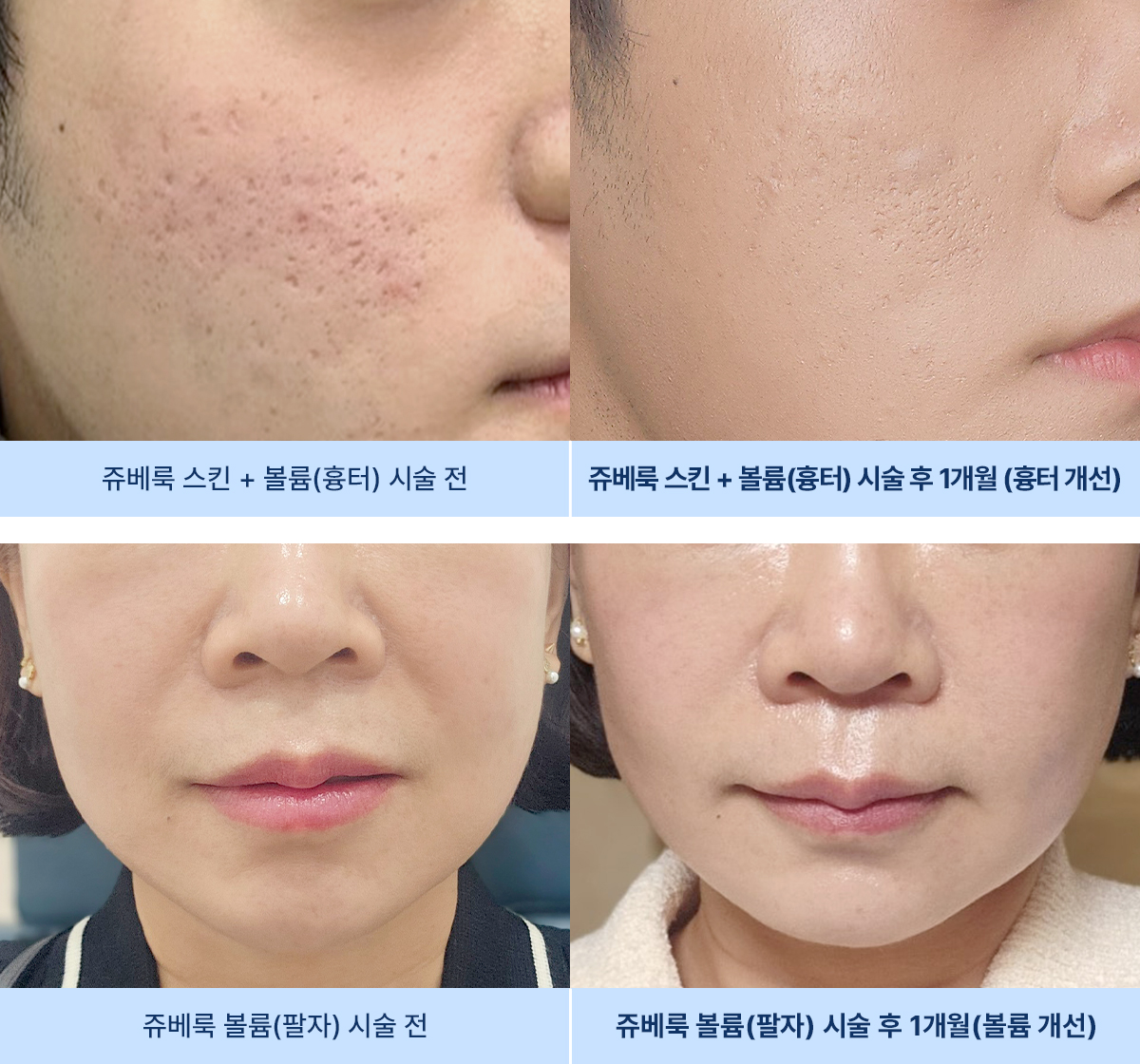 쥬베룩은 피부의 질감과 탄력을 개선하는 데 탁월합니다. 시간이 지남에 따라 피부가 매끄럽고 탄탄해지며, 눈에 띄게 건강한 상태로 변화합니다.