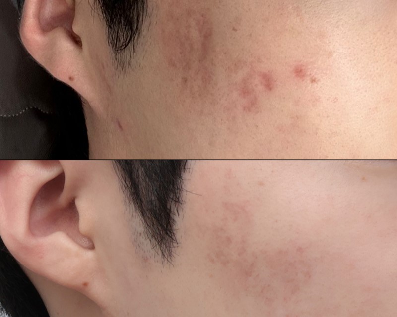 어렸을 때 부터 났던 여드름을 집에서 짜고, 짜고 나면 흉터나고, 그러다 여드름 나면 또 짜고 관리를 제대로 못해줬더니 성인돼서까지 흉터가 이어져서 스트레스였어요